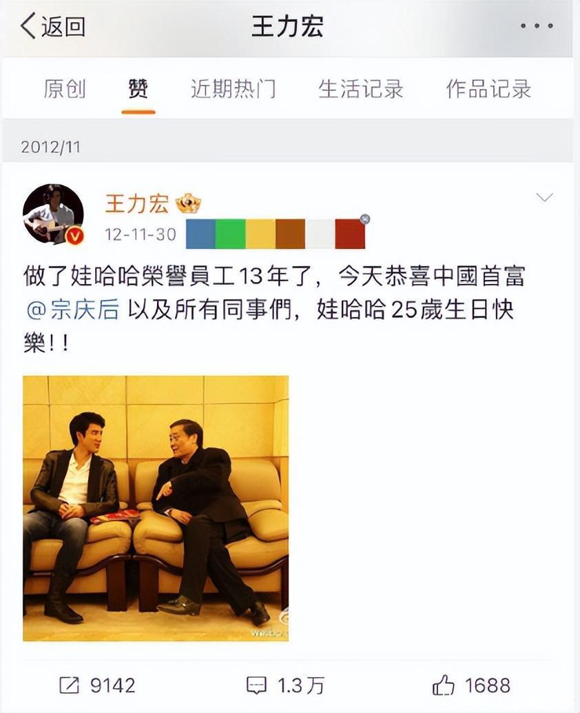 网友发现王力宏近日点赞了一条对于祝颂娃哈哈25周年的旧文动态,用我方的形态低调牵挂宗庆后。
